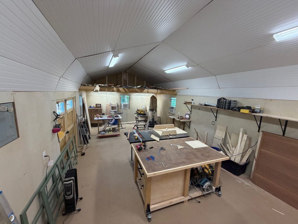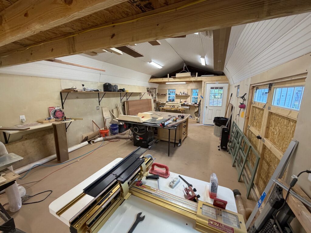 Since then I’ve been getting it into a usable state – wiring, insulation, wall and ceiling covers and generally moving in. I even splashed out and bought a new table saw – a SawStop – one of those that if you put your finger in the blade it immediately stops and prevents serious injury. I figured this nice expensive saw would be a savings over the hospital costs when I manage to cut my finger off!!!