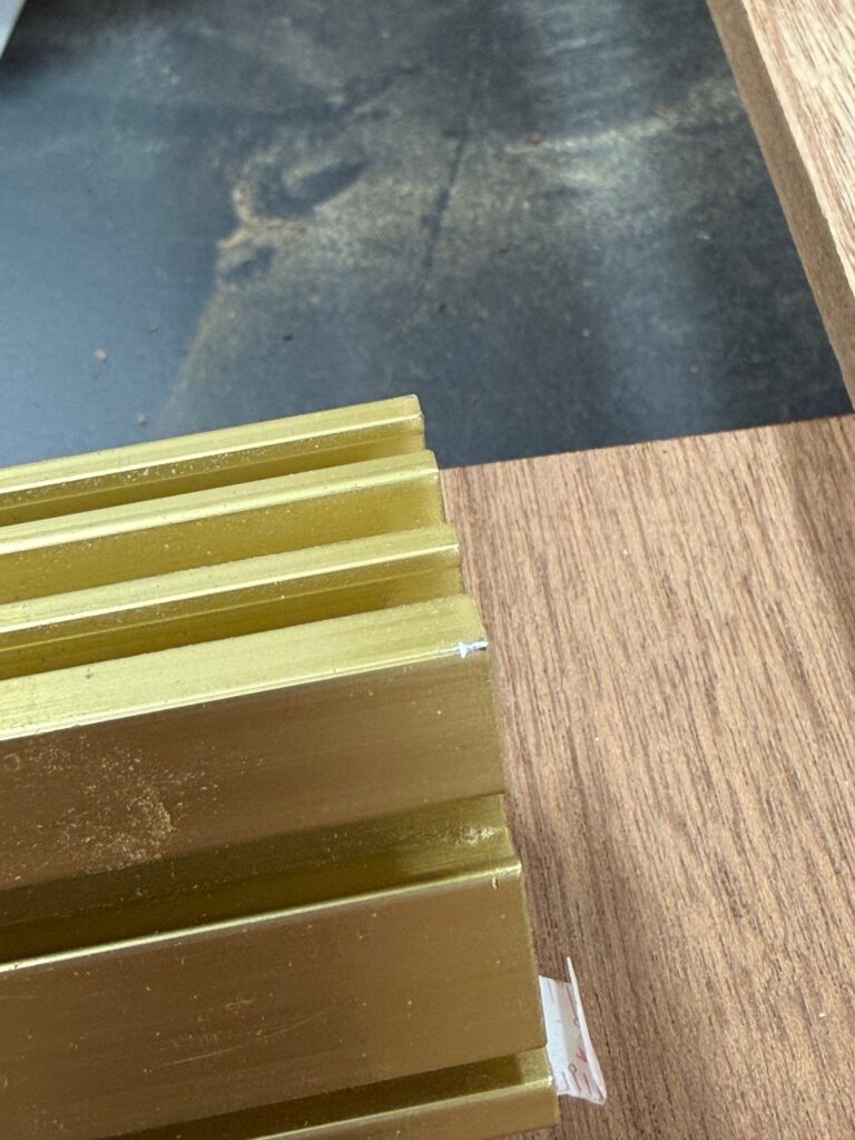 ****** The day after I published this blog, I had a mishap… I incorrectly adjusted my mitre gauge on the saw and it connected with the blade. Instantly stopped and limited the damage to a tiny scratch in the Aluminum. Glad it wasnt a finger – but reassuring!